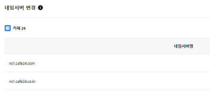 도메인은 호스팅케이알에서 구입했지만, 네임서버를 카페24로 바꿔줌으로써 CNAME, A네임 등을 그쪽에서 설정하면 되는 것이죠.