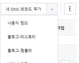 우측에 새 DNS 레코드 추가 버튼이 있으면 그것을 누르면 한 번에 아주 쉽게 티스토리 블로그로 연결될 수 있게 설정할 수 있습니다.